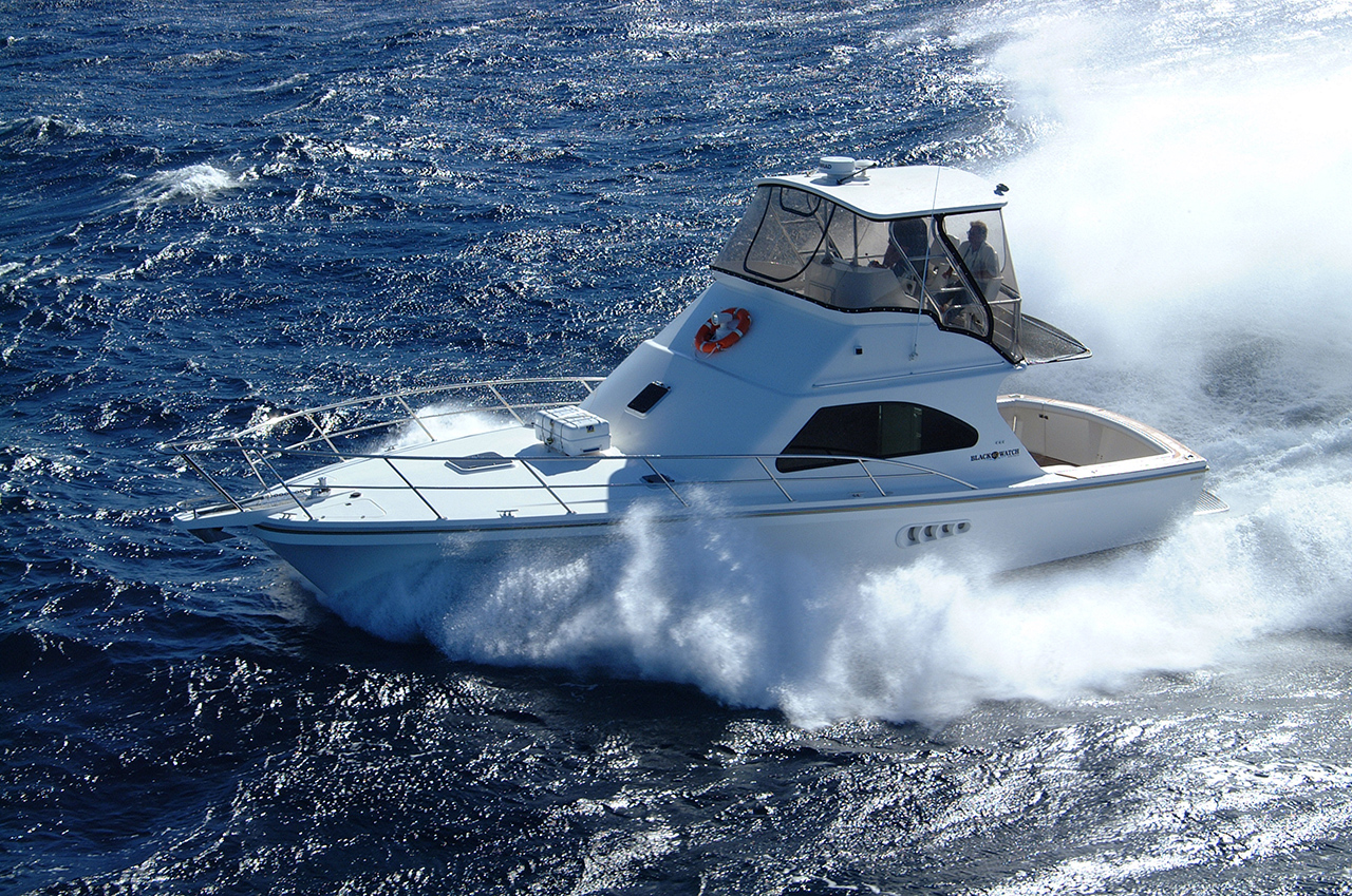 With standard twin 450 HP power the Black Watch 40 will deliver an approximate speed of 30 knots with a sizeable load, with a comfortable cruise on 22 to 26 knots using an average of 100 litres per hour. Acceleration of the vessel is sensational with maneuverability which is often described as the best in the business. The Black Watch 40 will leap backwards at 10 knots and carve 360 degrees turns in less than 30 seconds. Finesse.